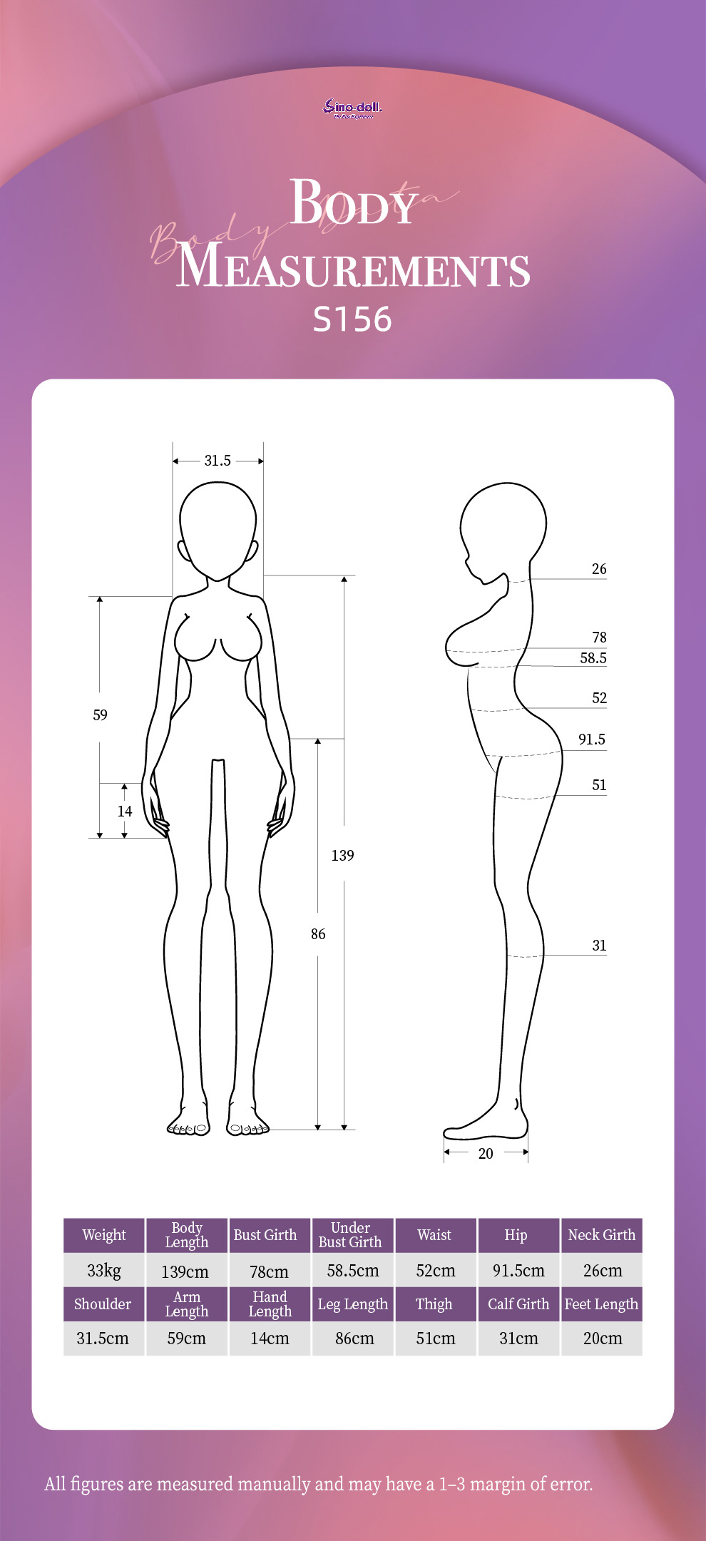 *Bust/Waist/Hip: 78cm*52cm*91.5cm